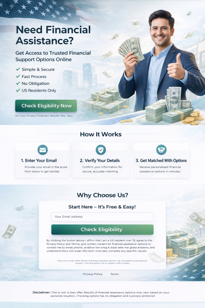 Financial Assistance Need Financial Assistance? Check Eligibility Now Disclaimer: This is not a loan or job offer. Results may vary. No obligation.